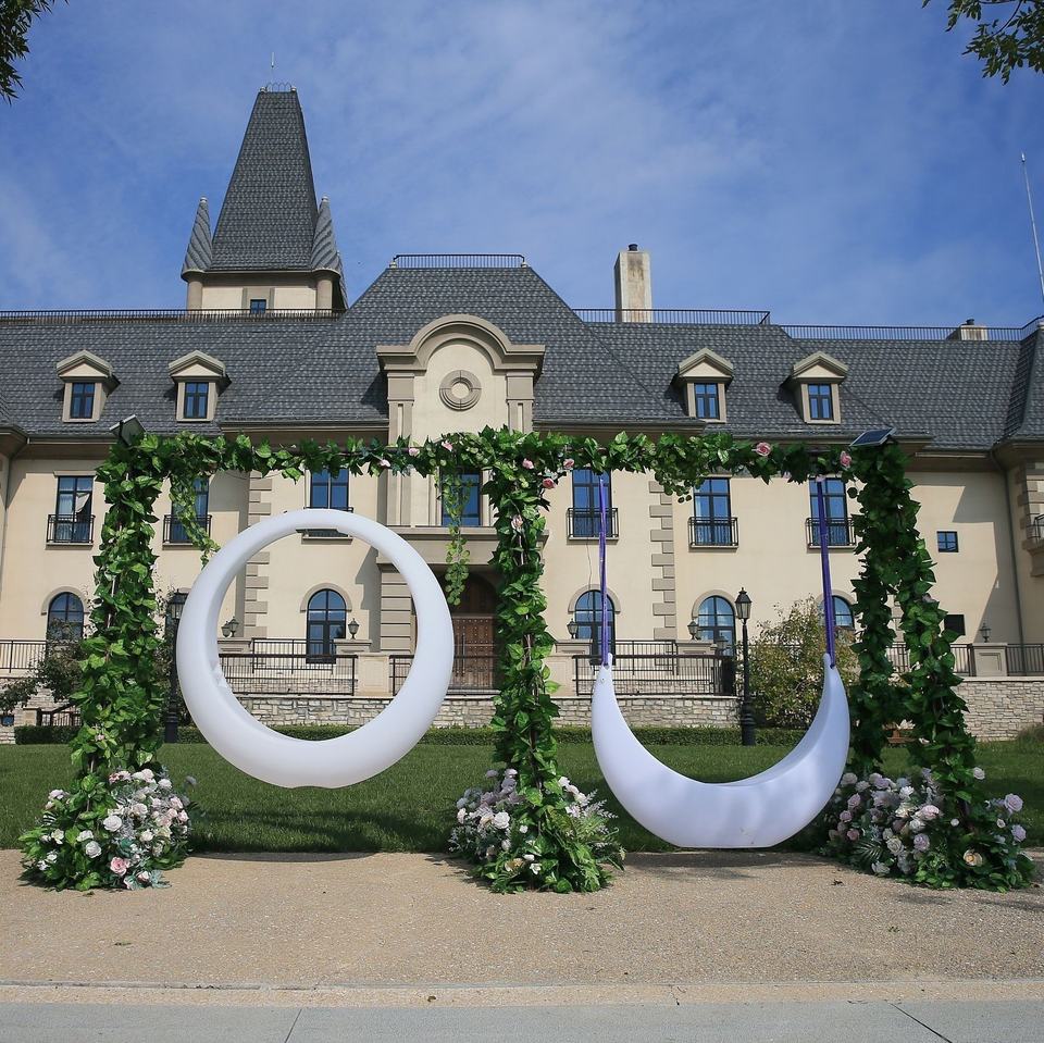 ชิงช้ารูปพระจันทร์เสี้ยวสำหรับตกแต่งสวนกลางแจ้งพร้อมเก้าอี้แกว่งรูปพระจันทร์เสี้ยวเรืองแสงพลังงานแสงอาทิตย์