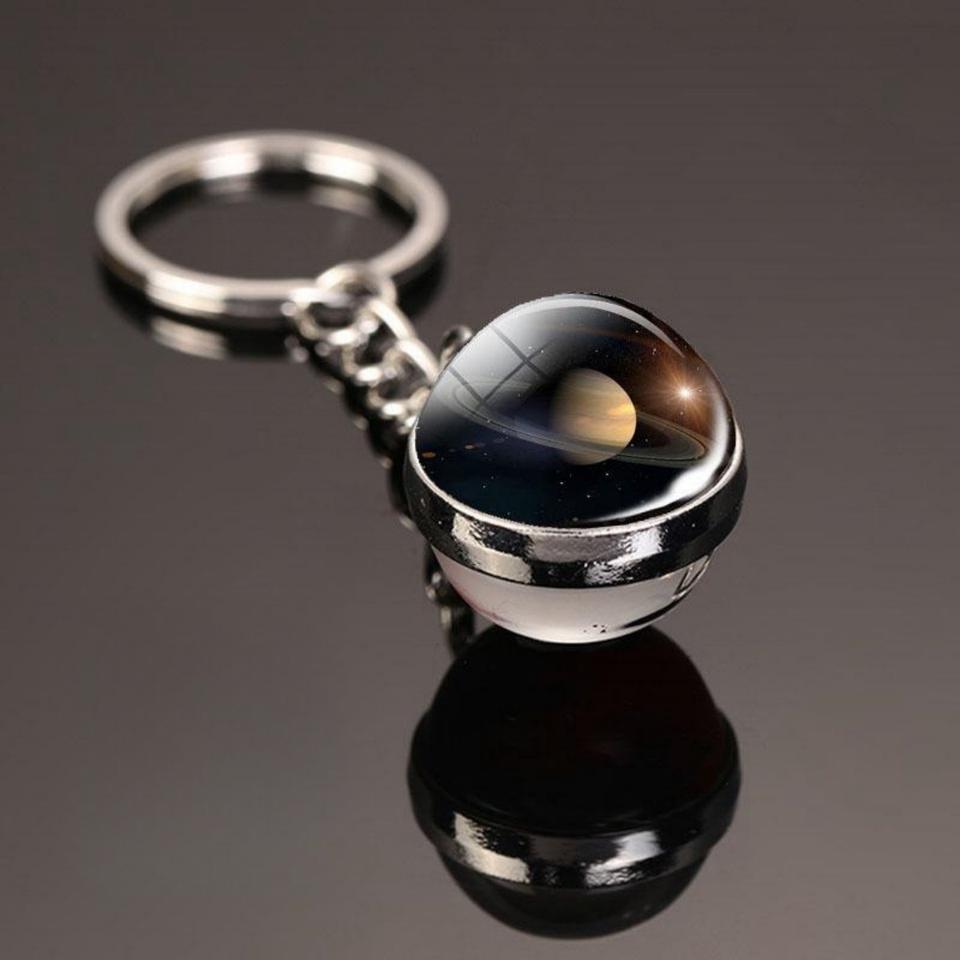 Logo:Moon keychain, solar system metal pendant, galaxy nebula