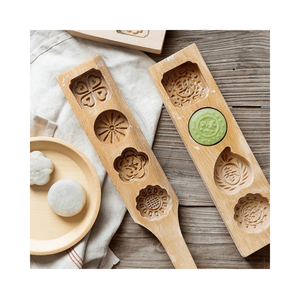 แม่พิมพ์ขนมไหว้พระจันทร์แบบดั้งเดิม3รูปดอกไม้แม่พิมพ์อบขนมทำด้วยมือทำจากไม้สำหรับมัฟฟินเทศกาลกลางฤดูใบไม้ร่วงแบบเวียดนาม
