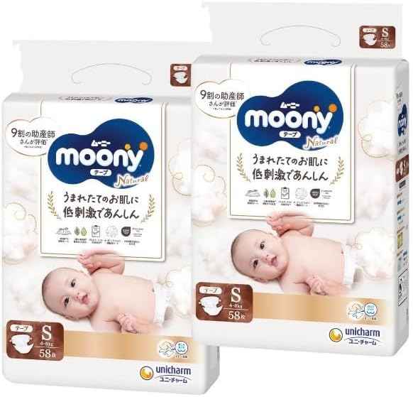 ผ้าอ้อมสำเร็จรูปมูนนี่ ผ้าฝ้ายออร์แกนิคปักลาย ชุด 2 ถุง สำหรับเด็ก 4-8 กก. 58 แผ่น ป้องกันการรั่วซึมแบบ 3 มิติ นุ่ม ระบายอากาศได้ดี แพ็คใหญ่