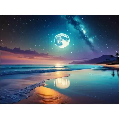Moonlight Ocean Beach Wall Mural Kitchen and Bathroom Backsplash in Marble Ceramic for Kitchen and Bathroom Renovations