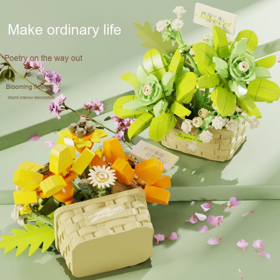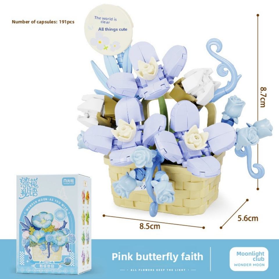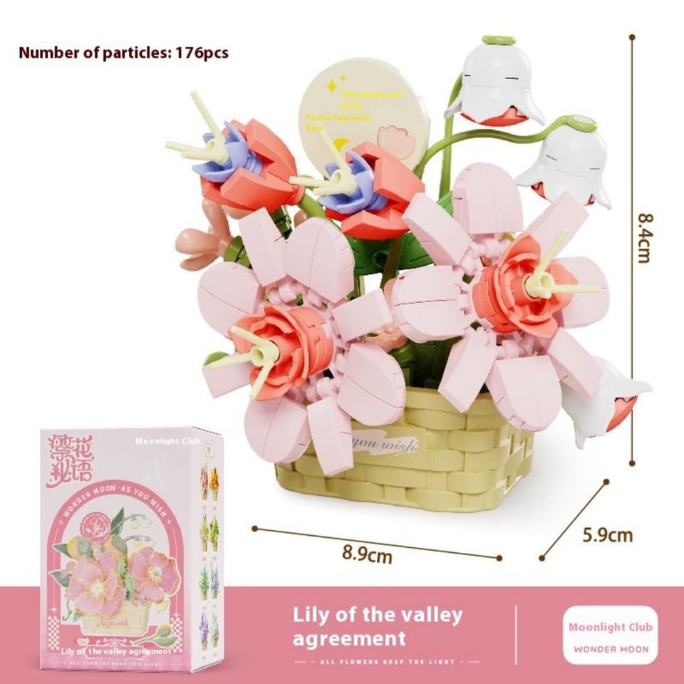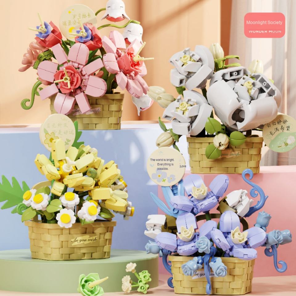 ชุดตัวต่อบล็อก Moonlight Society แบบไมโครพลาสติก รูปกระเช้าดอกไม้ ของเล่นประกอบเอง ของตกแต่งสร้างสรรค์สำหรับเด็กผู้หญิงในวันหยุด