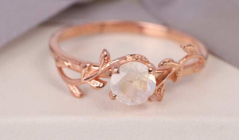 แหวนหมั้นรูปใบมูนสโตนสำหรับผู้หญิงแหวน925เงินสเตอร์ลิง14K ชุบทอง