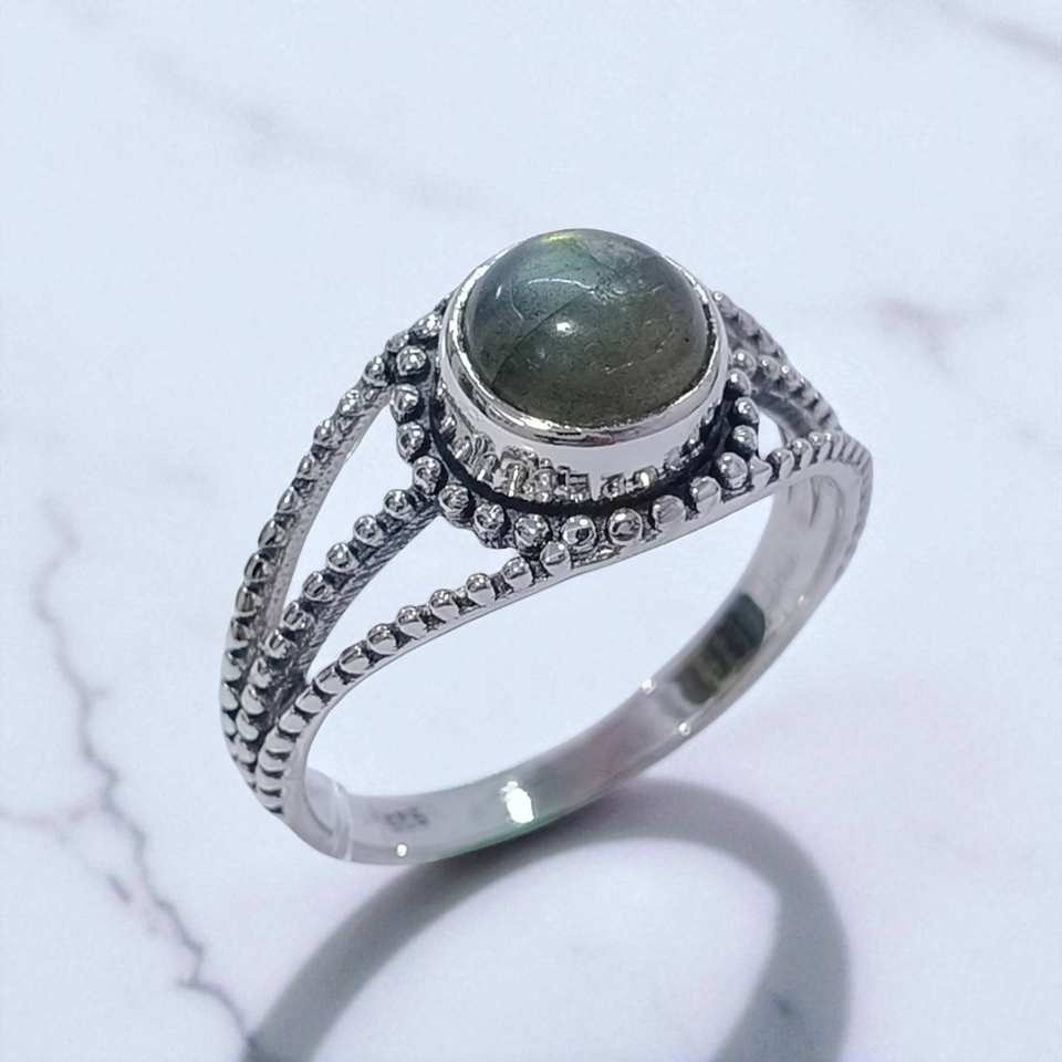 แหวนมูนสโตนและลาบราดอไรต์เงินแท้ 925 ทำมือ สไตล์โบโฮ ดีไซน์แหวนแยกส่วน หรูหรา พรีเมียม สำหรับผู้หญิง