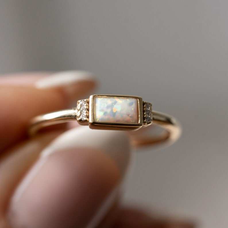 แหวนพลอยอัญมณีทรงหลวมสีขาวสำหรับผู้หญิงทำจากความร้อนในวันครบรอบวันเกิด