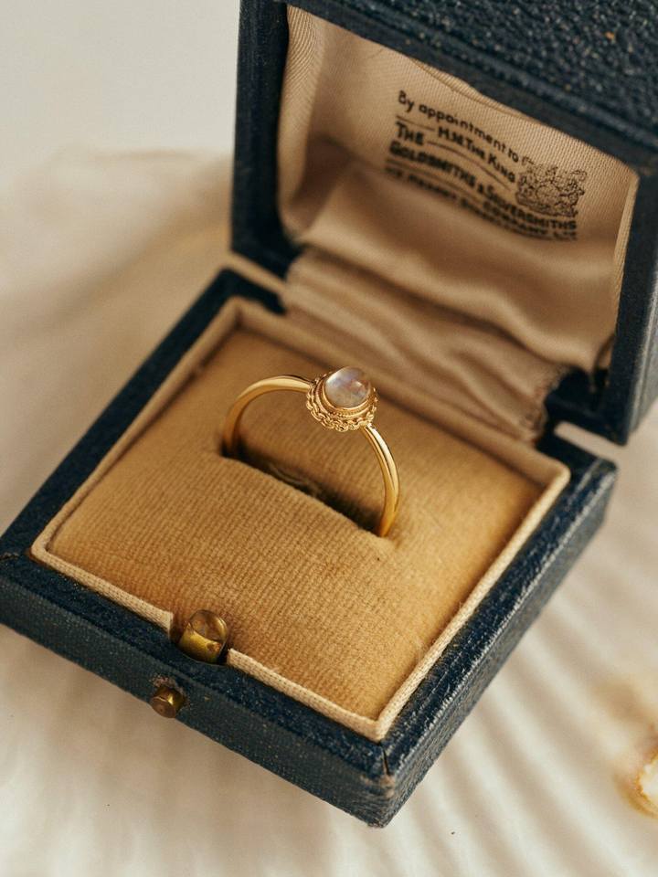 แหวนมูนสโตนแบบซ้อน แหวนคริสตัลลาบราโดไรต์ทรงกลม แหวนสัญญาเรียบหรู ของขวัญสำหรับแฟนสาว