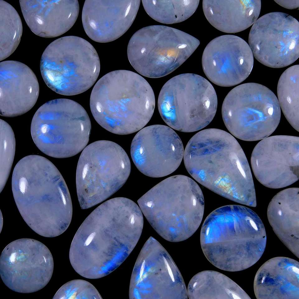 แหวนมูนสโตนทรงสี่เหลี่ยม คาโบชองแก้วทรงกลม ลาริมาร์ และมูนสโตน โบลเดอร์โอปอล คาโบชอง ขายส่งพลอยมูนสโตนสีรุ้ง