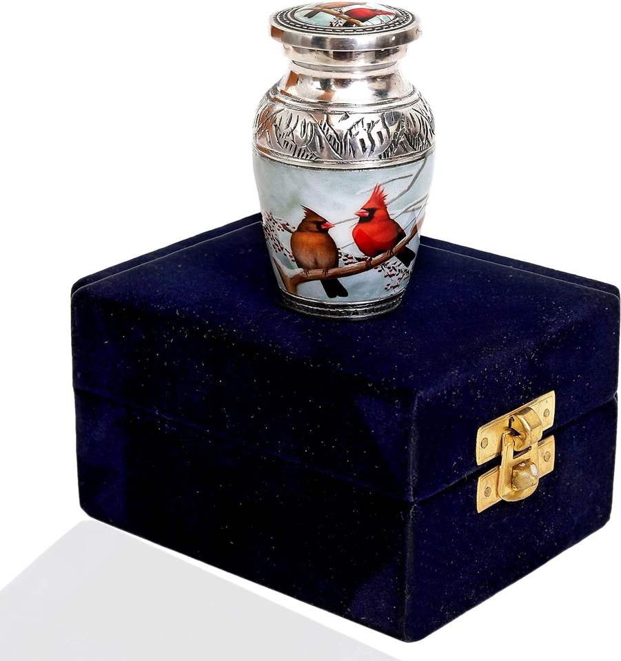 โกศโบราณแบบทันสมัยสำหรับใส่เถ้ากระดูกมนุษย์ กล่องกำมะหยี่รูปหัวใจ พร้อมกรวย สวยงาม สงบสุข สีน้ำเงินเข้ม อะลูมิเนียม สลักลายด้วยมือ ขนาดเล็ก