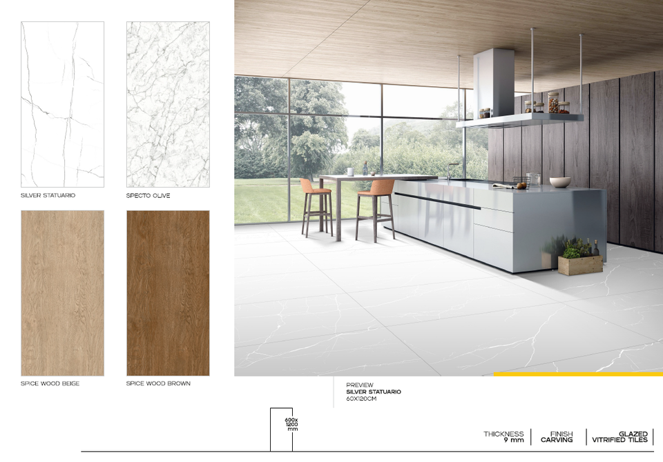 Modern Design Glossy 600x1200mm Porcelain Matt Glazed 8MM Thick Floor Tiles Impression Marble Style Room Apartment Decor
