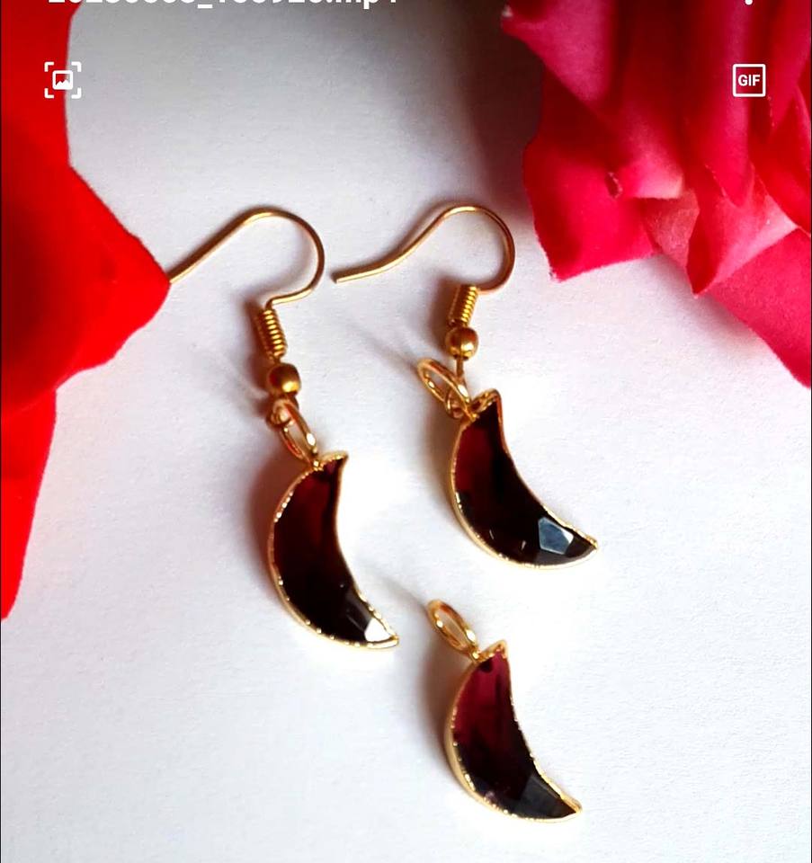 ชุดสร้อยคอต่างหูอัญมณีทรงพระจันทร์ครึ่งเสี้ยวสีซิทรีนยอดนิยมสร้อยคอ925ชุบทอง