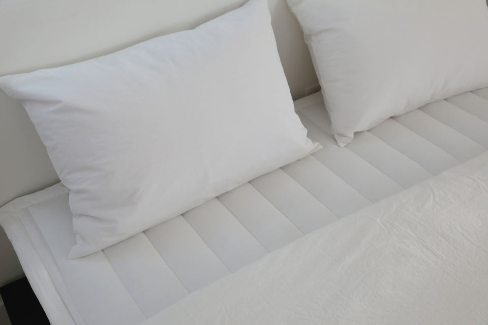 แผ่นรองที่นอนไมโครไฟเบอร์แบบเย็บติดกัน ขนาด 110x200 ซม. รุ่น SS ดีไซน์เรียบง่ายสไตล์โรงแรม ชุดเครื่องนอนสไตล์เกาหลี ซักได้ ทนทาน นุ่มสบาย