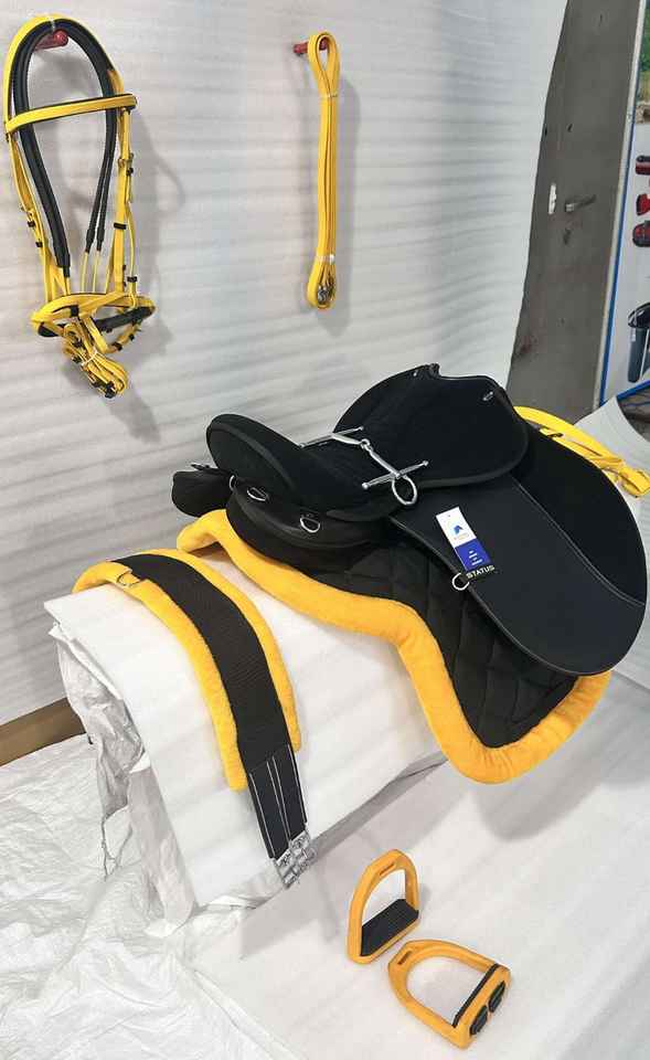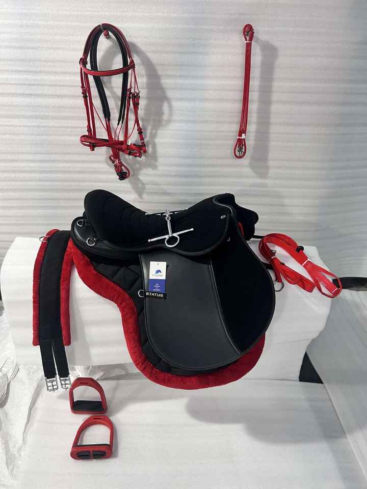 อานม้าสำหรับวิ่งทางไกล + แผ่นรองอาน + สายรัดขนสัตว์ + บิตม้า