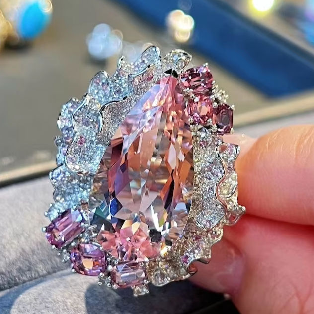 Keyword:Morganite Cherry Blossom Cocktail Ring 925 Sterling Silver