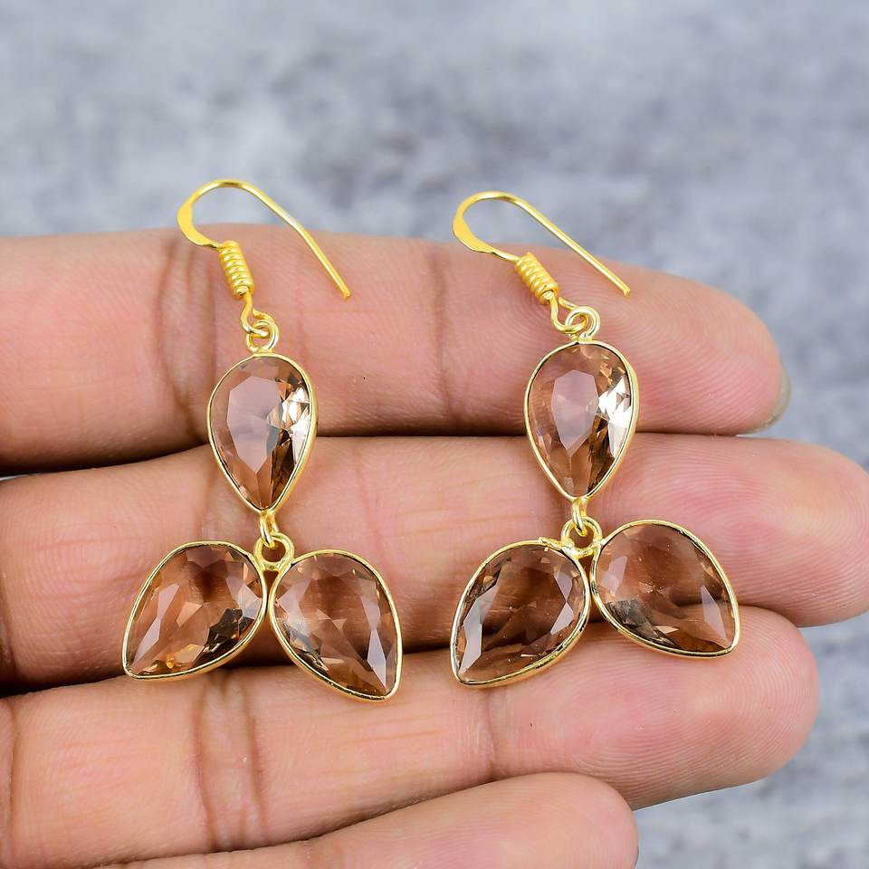 มอร์แกไนต์สามพลอยอัญมณีลูกแพร์925เงินสเตอร์ลิงต่างหูห้อยทองสำหรับผู้หญิงต่างหูทำด้วยมือของขวัญสำหรับเธอ