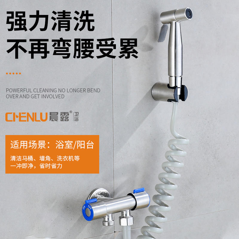 เครื่องฉีดน้ำแรงดันสูง Morning Dew รุ่น 304 สแตนเลสสตีล หัวฉีดคู่ ปรับระดับได้ สำหรับทำความสะอาดห้องน้ำ