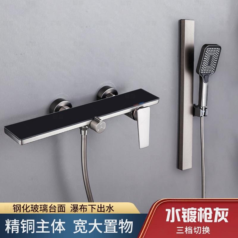 ชุดฝักบัวอาบน้ำสองระดับหรูหรา Morning Dew ขนาด 43 ซม. ผิวด้าน พร้อมชั้นวางของและฝักบัวแบบมือถือ