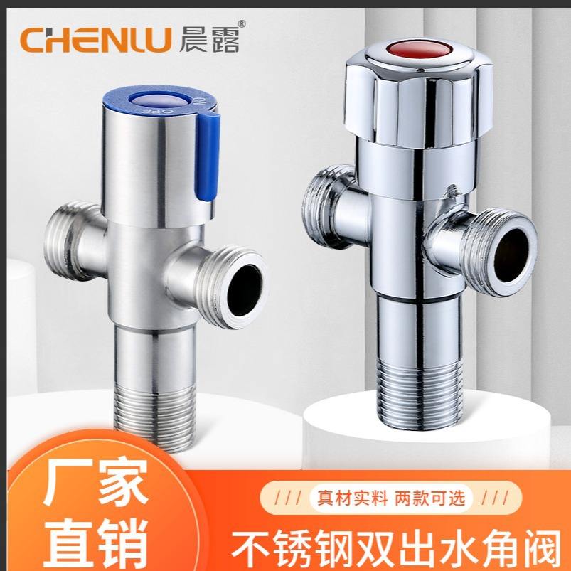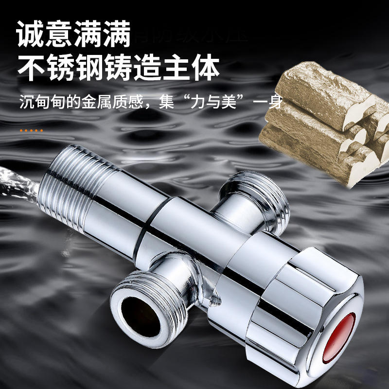 วาล์วปรับมุมสแตนเลสแบบสองทาง ยี่ห้อ Morning Dew รุ่น Chrome Finish หนึ่งทางเข้า สองทางออก สำหรับห้องน้ำ