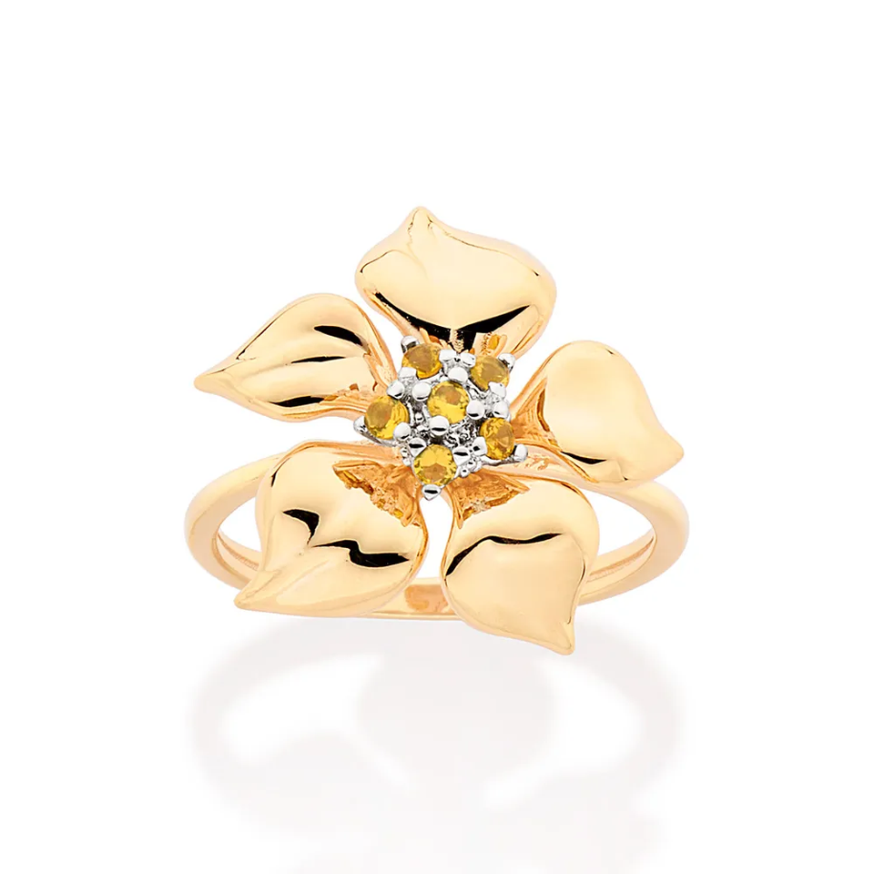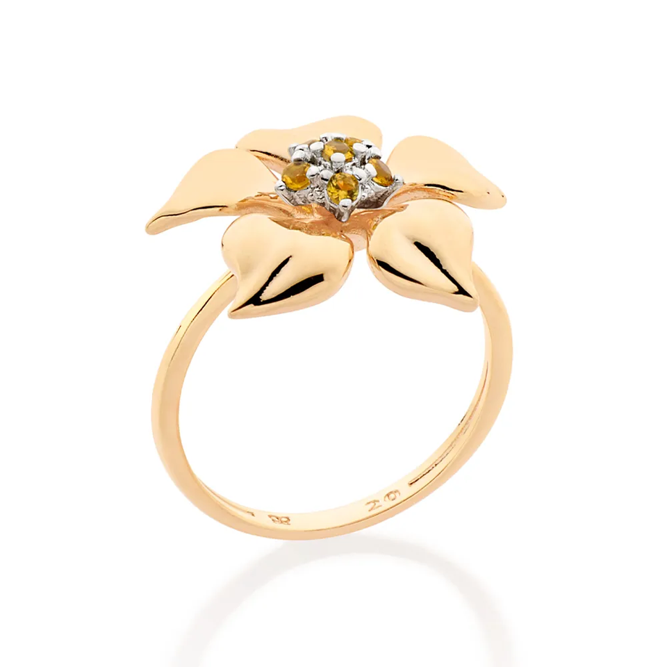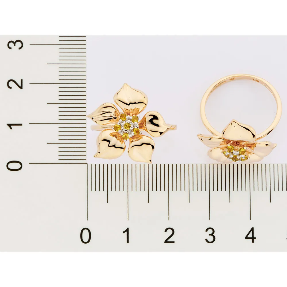 Morning Flower Skinny Ring for Women's Fashion Jewelry Six Yellow Diamond in Ring 14k Gold Filled Jewelry