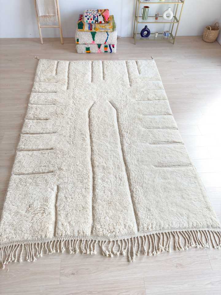 พรมขนสัตว์โมร็อกโกเบนีอูเรน ทำมือ ทอมือ ลายตารางสีน้ำตาล สำหรับห้องนั่งเล่น ห้องรับประทานอาหาร รับสั่งซื้อจำนวนมาก