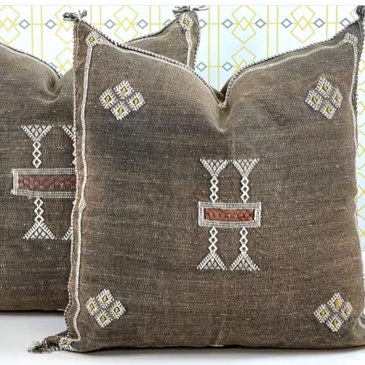 ปลอกหมอนผ้าไหมสไตล์โมร็อกโกสีน้ำตาลขนาด10ชิ้น