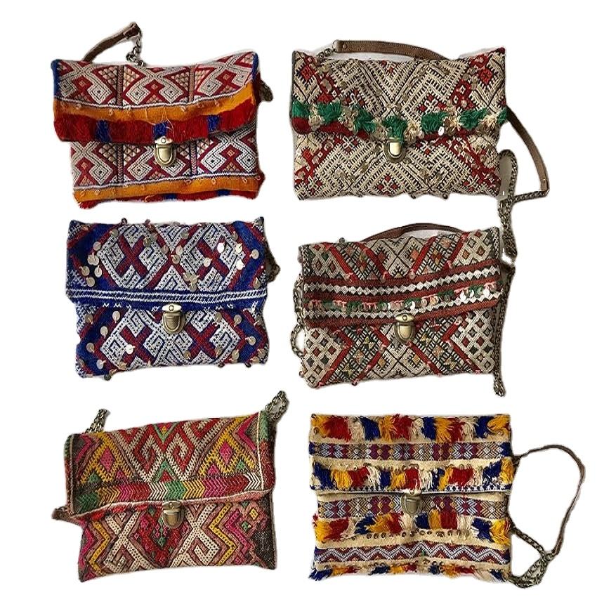 กระเป๋าคลัทช์ทำมือสไตล์โมร็อกโก คอลเลคชั่นสวยงาม แฟชั่นโบฮีเมียน สำหรับสุภาพสตรี บุด้วยหนังแท้ ลายสัตว์ เปิดปิดแบบเปิด