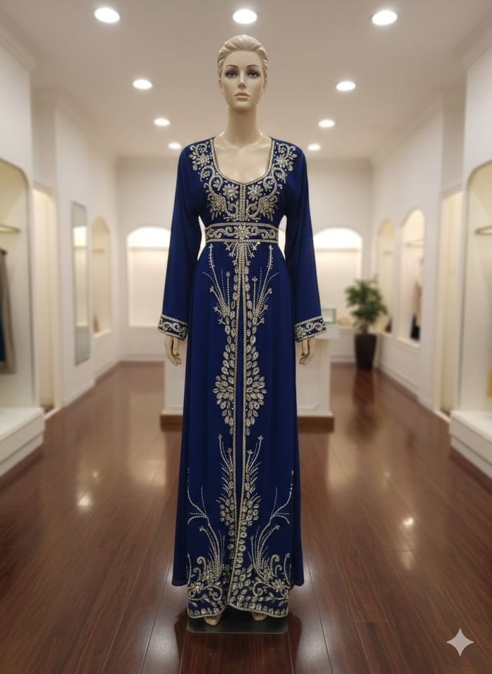 ชุดเดรสอาบายา มุสลิม ประดับลูกปัด แบบคาฟตัน