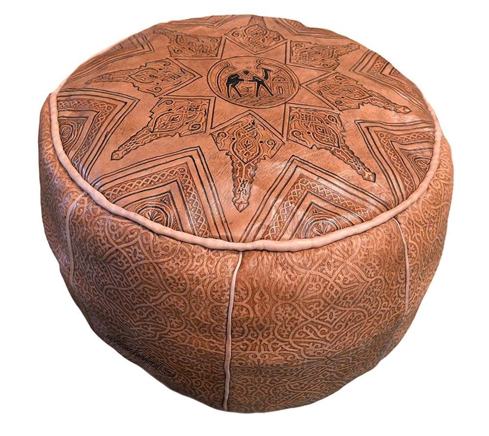 หนังโมร็อกโก Pouf ออตโตมันโมร็อกโก Poof โมร็อกโกหนังอาหรับเท้าชาติพันธุ์