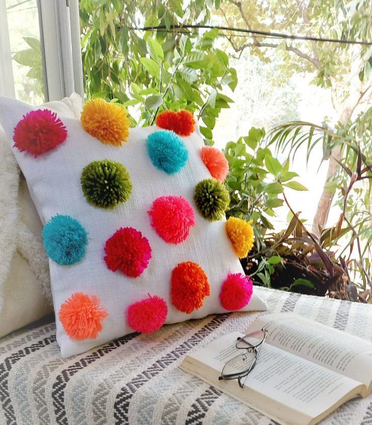 Mode:Moroccan Cotton Cushion Covers With Colorful Pompoms