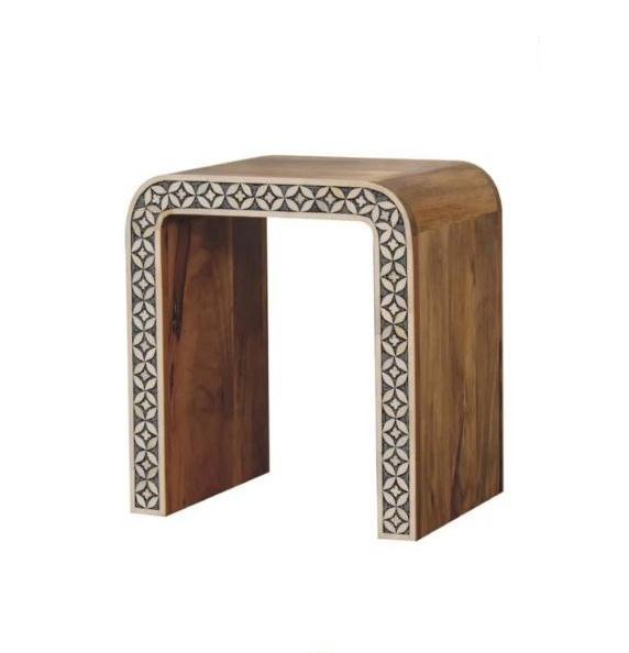 โต๊ะข้างเตียงสไตล์โมร็อกโก ทำมือ ลายฉลุกระดูกและเรซิ่น ลายเงือกน้อยสีฟ้า โต๊ะสไตล์โบโฮ ราคาดีที่สุด