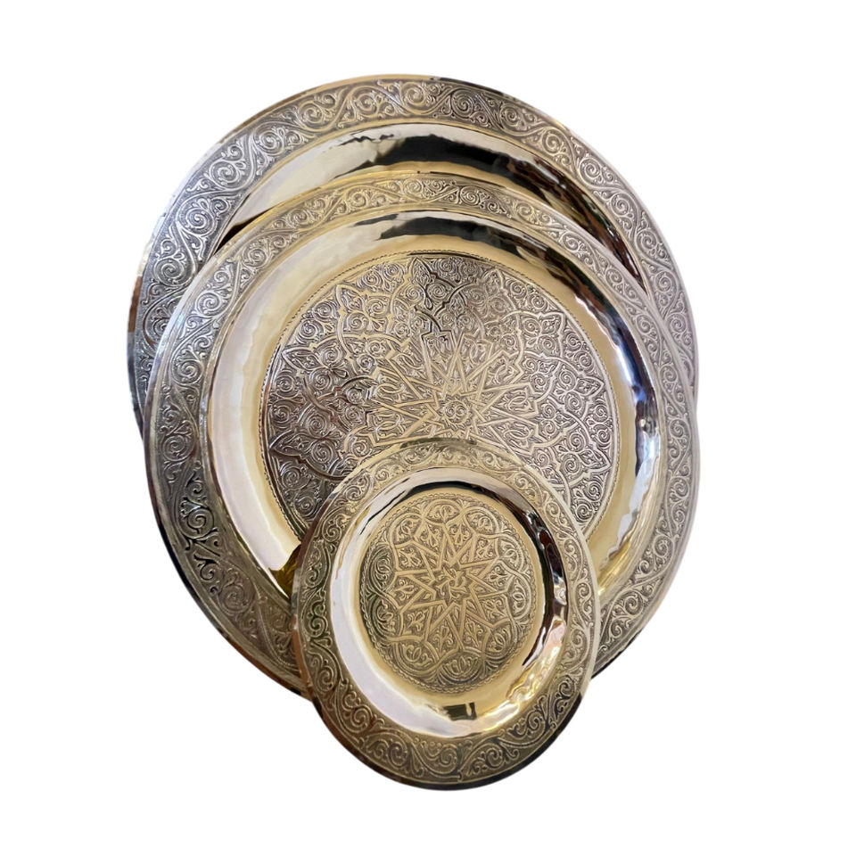 ถาดเสิร์ฟทรงแปดเหลี่ยมทองเหลืองฝังเงินสไตล์โมร็อกโก วินเทจลายดามัสก์แบบอิสลาม สำหรับตกแต่งบ้าน ลดราคา