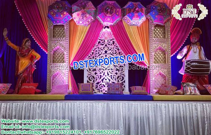 รูปแบบโมร็อกโก Mehndi เวทียิ่งใหญ่ Mehndi พิธีตกแต่งการตั้งค่าเวทีมหารานี Sangeet