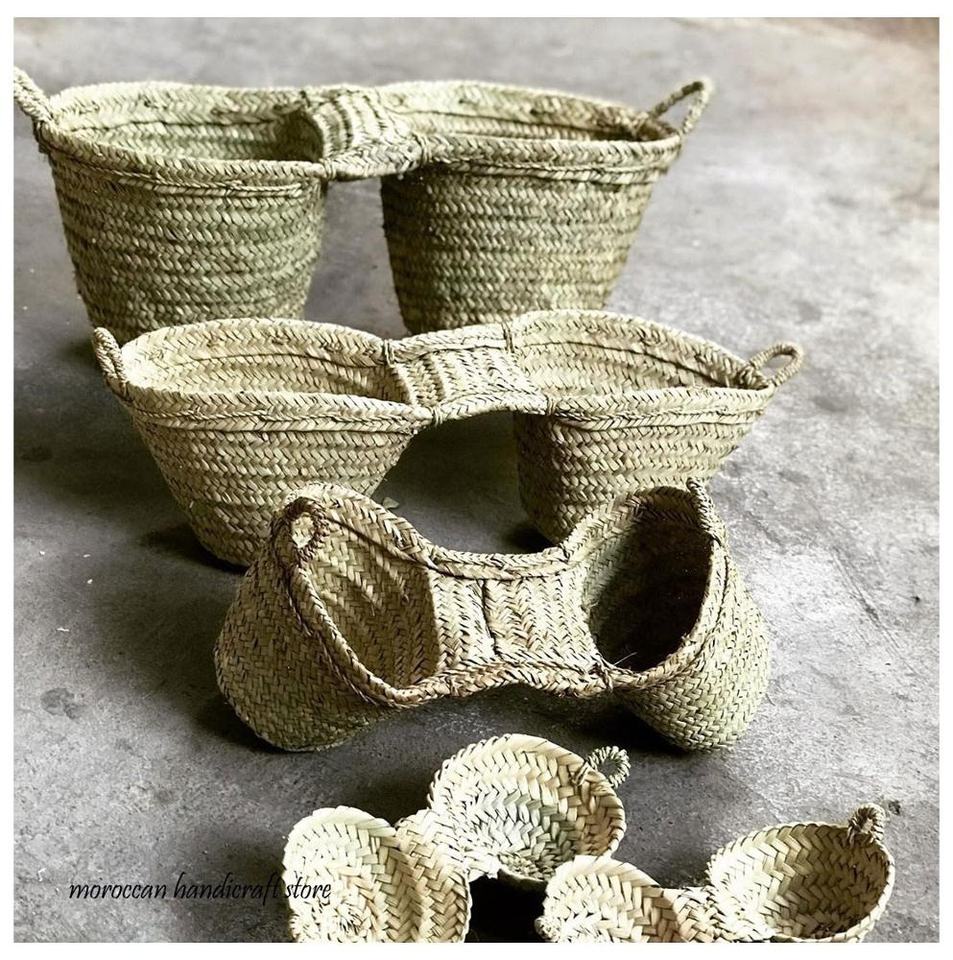 ตะกร้าฟางทรงเรขาคณิตสไตล์โบฮีเมียนสำหรับทุกเพศสไตล์โมร็อกโกทำด้วยมือและกระเป๋าสำหรับใส่ในฤดูร้อนของโมร็อกโก