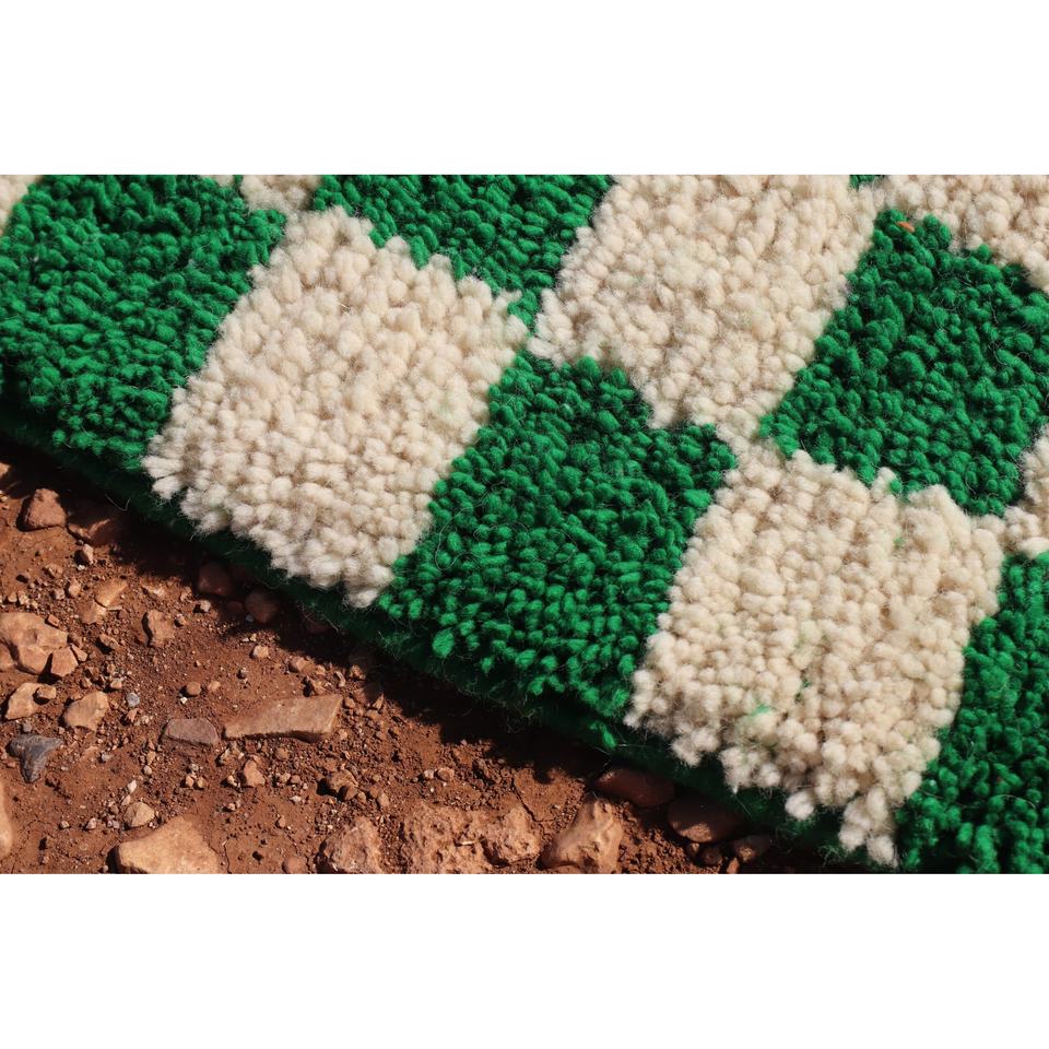 พรมลายตารางหมากรุกขนโมร็อกโกสีเขียวทำด้วยมือรูปแบบห้องโถงสี่เหลี่ยมผืนผ้าสำหรับห้องนั่งเล่นห้องนอนโรงแรมห้องอเนกประสงค์