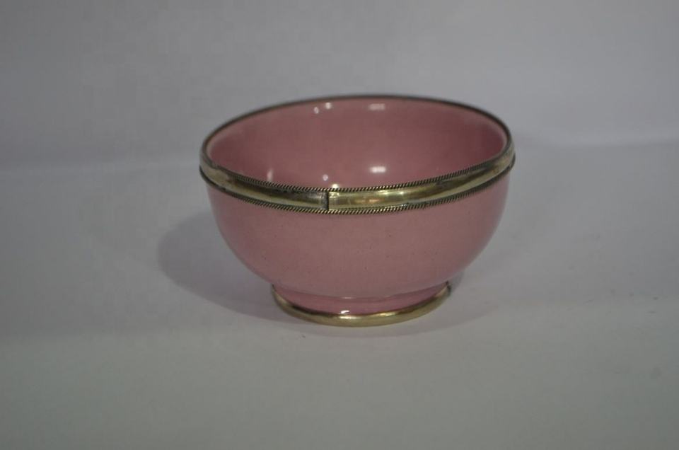 ชามดินเผาเคลือบนิกเกิลแบบโมร็อกโกและกล่องขนาดเล็ก ทาสีด้วยมือ สำหรับตกแต่งโรงแรม คาเฟ่ บ้าน หรือร้านอาหาร