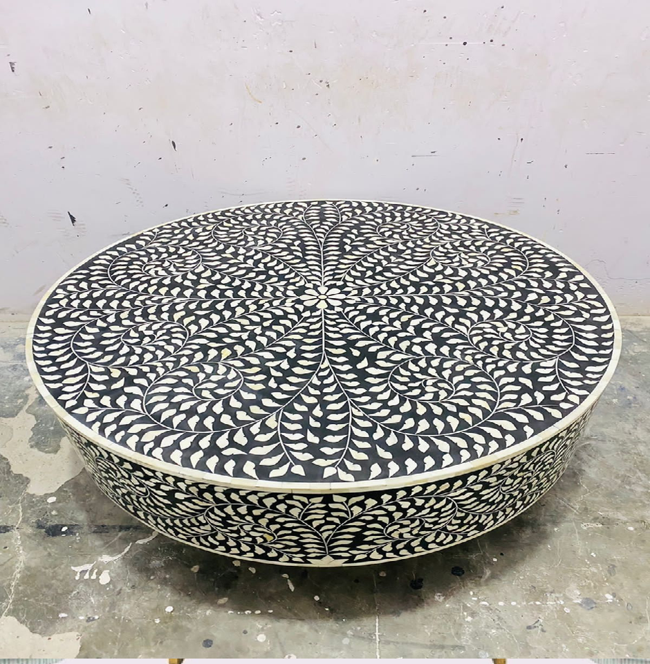 โต๊ะข้างทรงโค้งสไตล์โมร็อกโก ประดับด้วยงานฝังกระดูกสัตว์ พร้อมลวดลายศิลปะขาวดำอันประณีต จำหน่ายในราคาขายส่ง