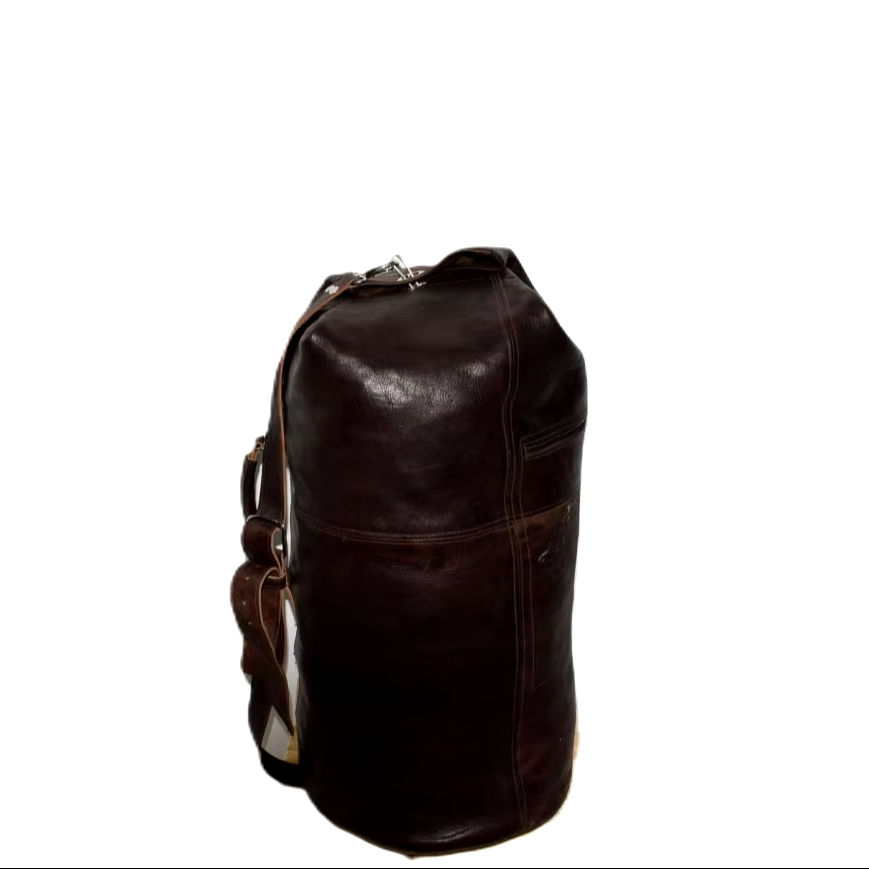 กระเป๋าเดินทางวินเทจสำหรับผู้ชาย Moroccan Soul หนังแท้ ปิดด้วยซิป สายสะพายสองเส้น ซับในผ้าแคนวาส ดีไซน์ทรงกระบอก