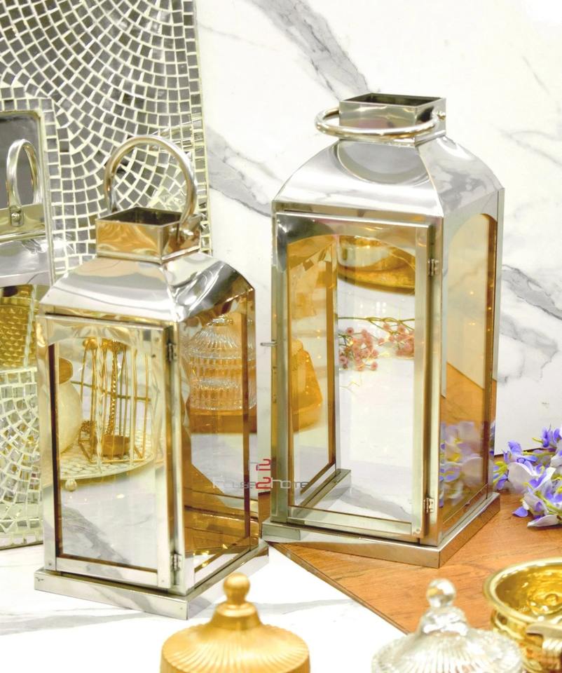 โคมไฟโมร็อกโกพร้อมกระจกสีเงินทนทานและโครงเหล็กสำหรับตกแต่งคริสต์มาสบ้านบ้านไร่สวน