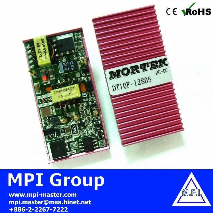 ตัวแปลงไฟฟ้ากระแสตรง Mortek รุ่น DT10-12S05 สำหรับอุตสาหกรรมและยานยนต์ กำลังไฟ 10 วัตต์ แบบเอาต์พุตเดี่ยว แปลงไฟ 12V เป็น 5V พร้อมระบบป้องกัน OVP/OCP และดีไซน์แบบแยกส่วน