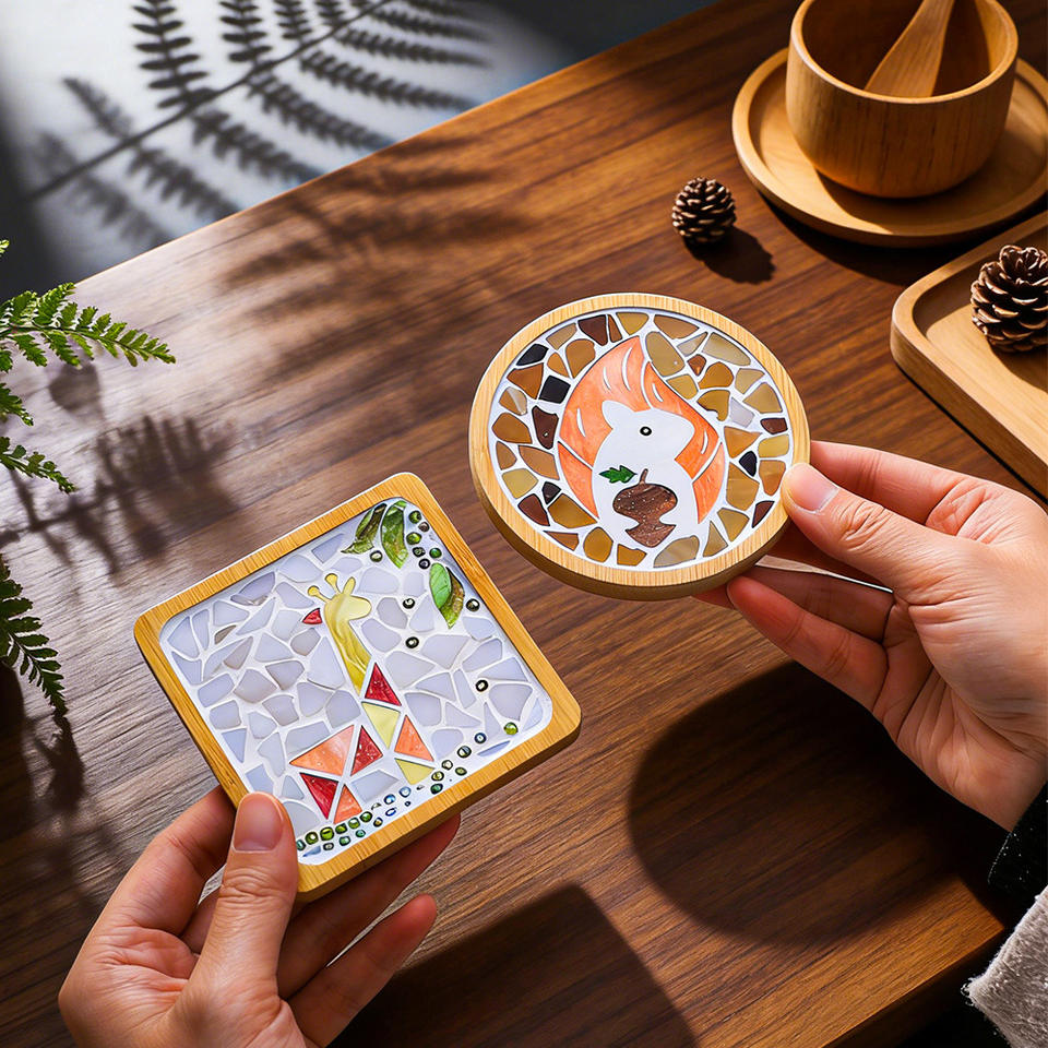 ชุดอุปกรณ์ทำแผ่นรองแก้วอะคริลิคโมเสค วัสดุสำหรับงานคอลลาจรูปสัตว์ สำหรับงานฝีมือเด็ก ของเล่นอนุบาล กิจกรรมพ่อแม่ลูก ของขวัญ