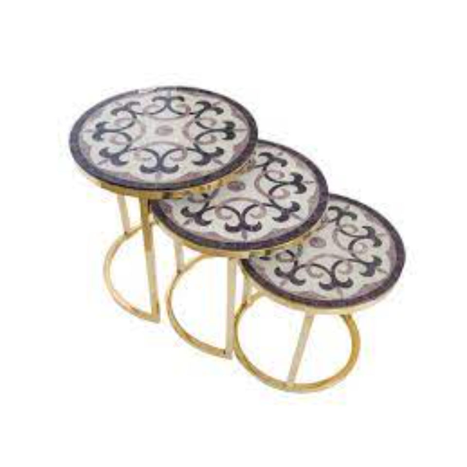 Mosaic Beaded Mother Of Pearl Work With Gold Plated Metal Base Stand Home Hotel Living Room Luxury Nesting And Coffee Tables