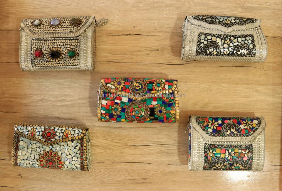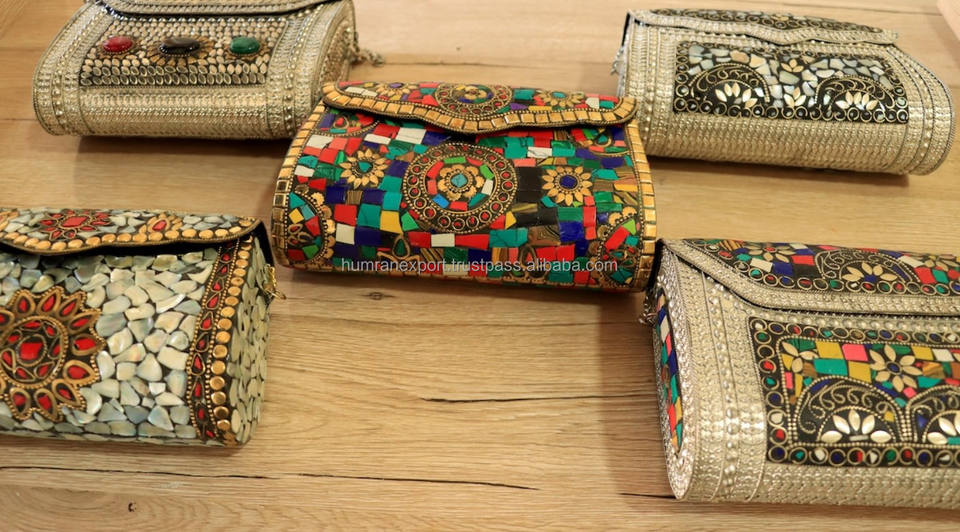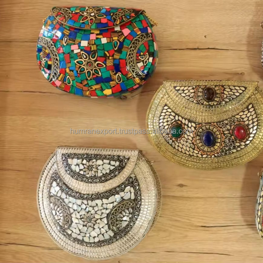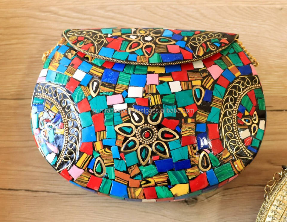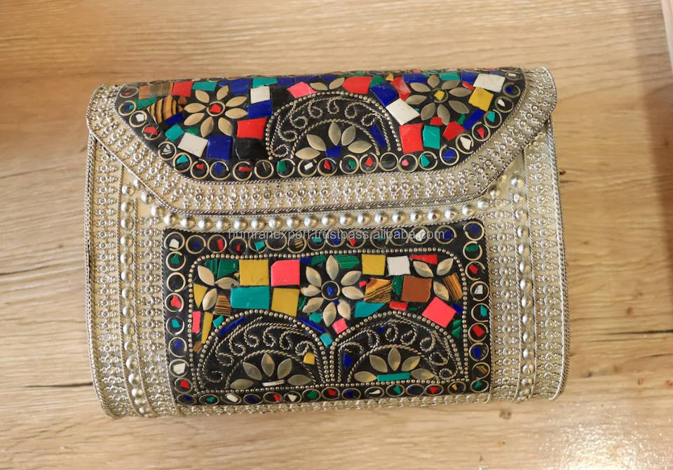 กระเป๋าคลัทช์ทำมือลายหินอินเดียแฟชั่นคลาสสิกทำด้วยมือคุณภาพสูงกระเป๋าคลัทช์โมเสคไมโครไฟเบอร์