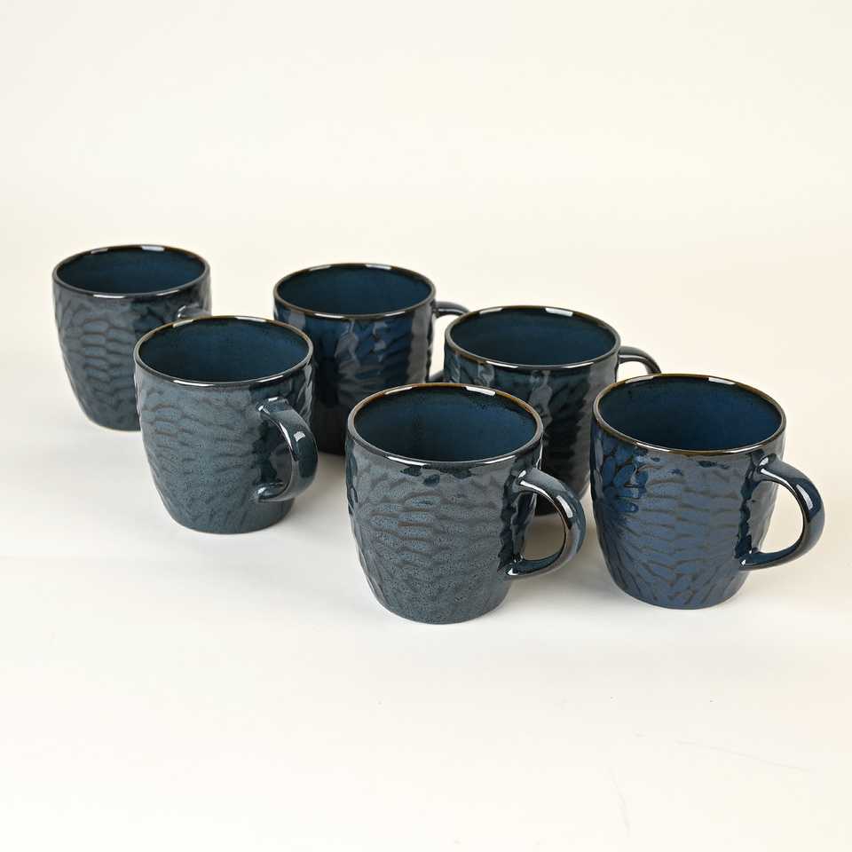 ชุดถ้วยชาเซรามิกสีเดนิมโมเสค 6 ใบ