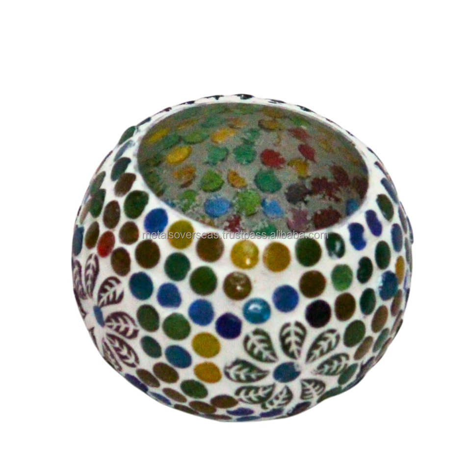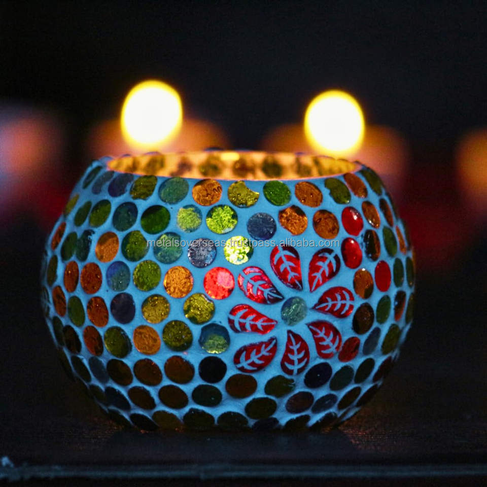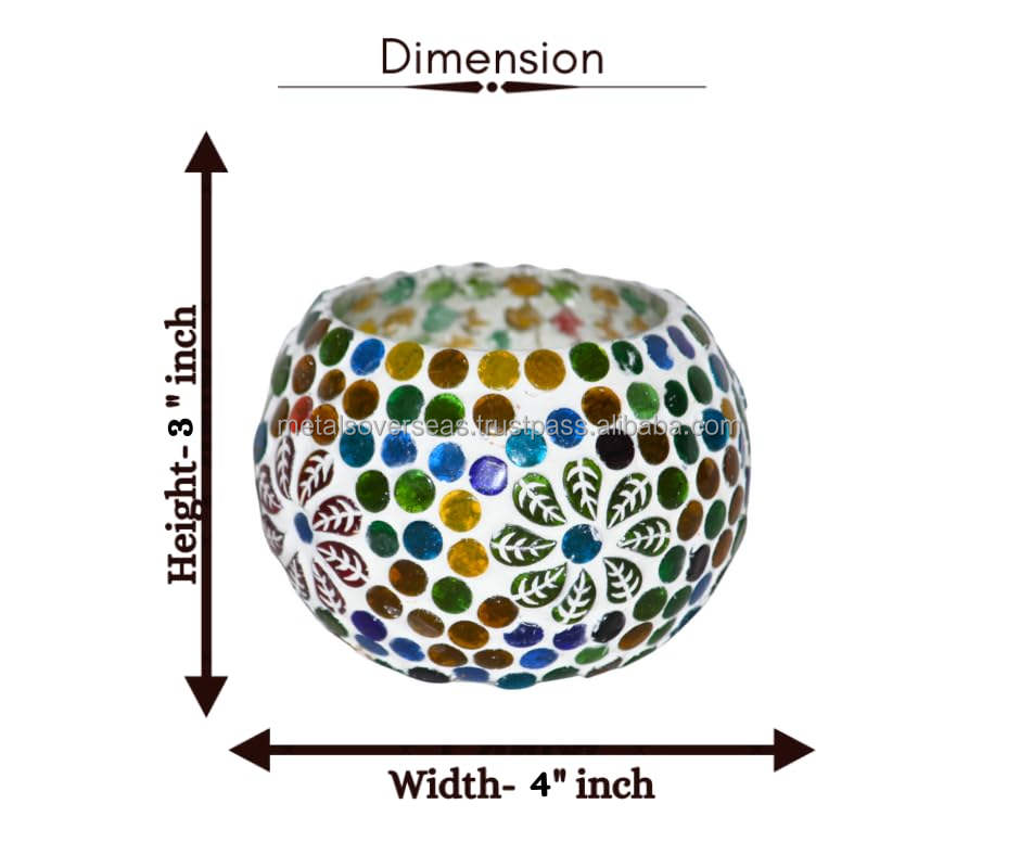 เชิงเทียนแก้วโมเสคทำมือรักษ์โลก ลายดอกไม้ สำหรับตกแต่งบ้านสไตล์ชาติพันธุ์และวินเทจ และใช้เป็นไฟประดับในงานเทศกาล