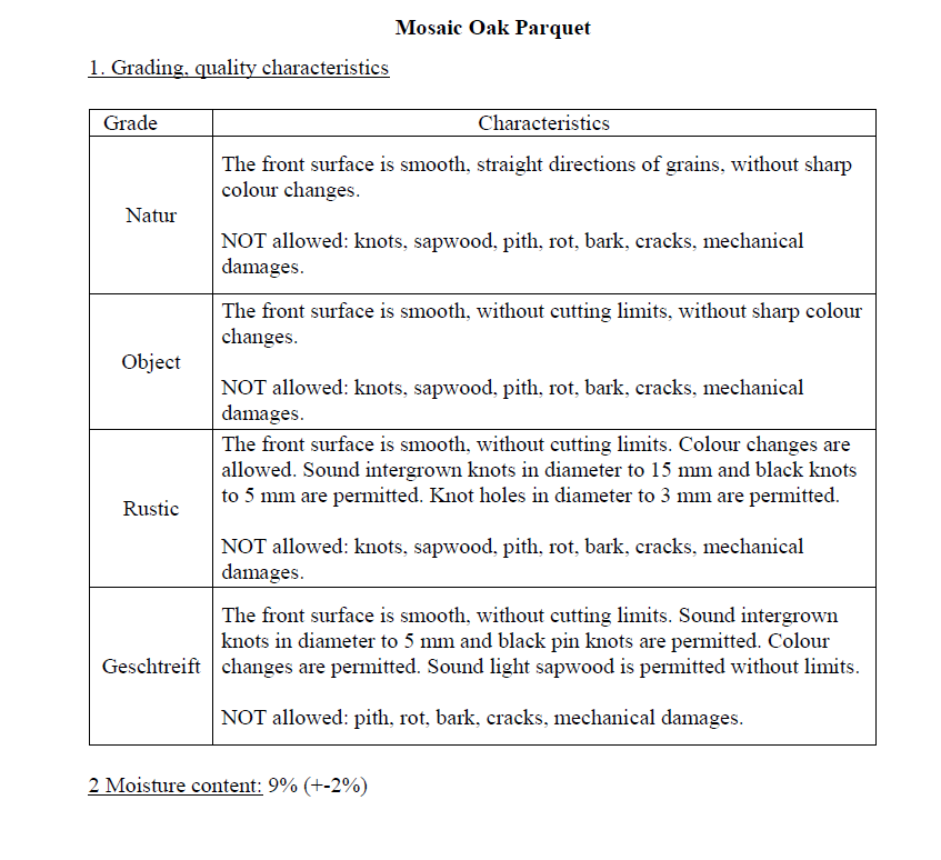 ชนิด:Mosaic Oak Parquet - Natur Grade