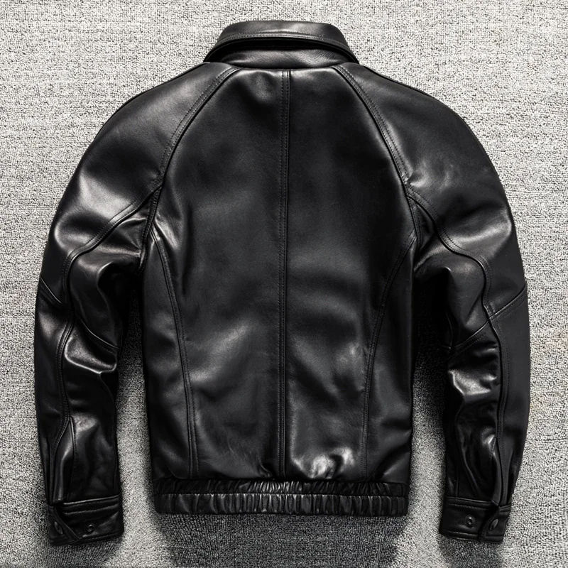 มอสโกแจ็กเก็ตหนังแกะแท้สำหรับผู้ชายทรงสลิมฟิตแบบลำลองแจ็คเก็ตหนังปกแบบสั้น