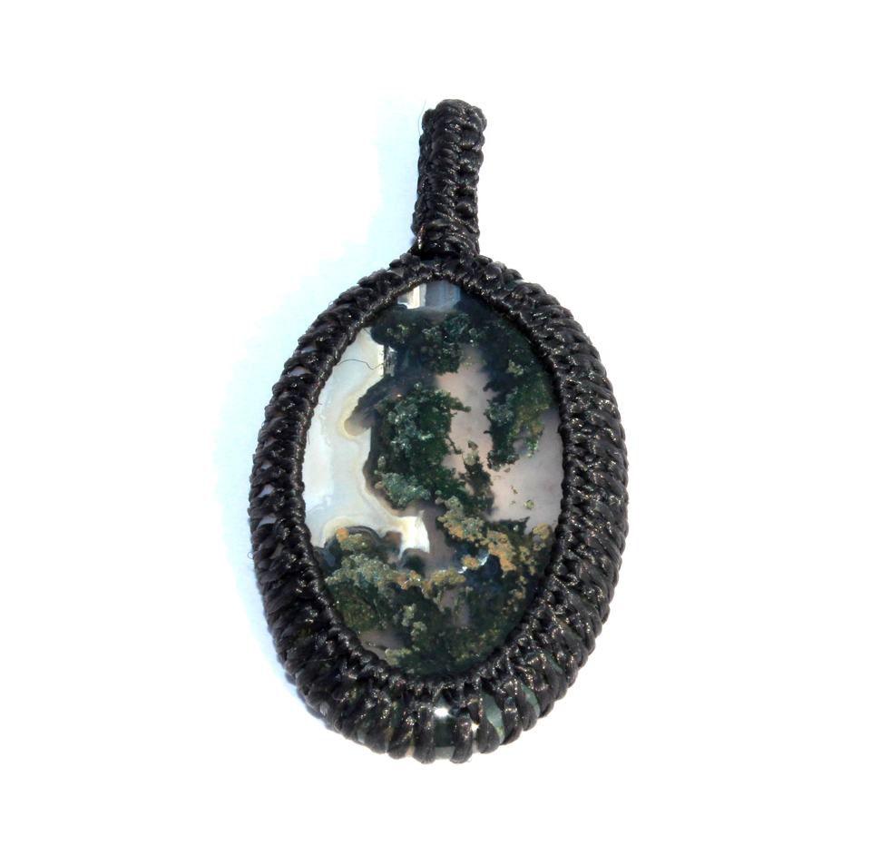 จี้คริสตัลมอสคาโบชองทรงรีห้อยห่อสายมาคาเม่