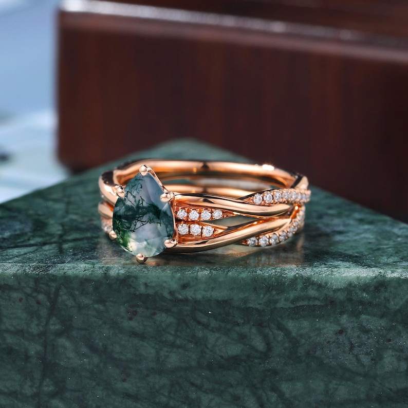 แหวนโมสอาเกต ประดับด้วยหินโมสอาเกตแวววาว