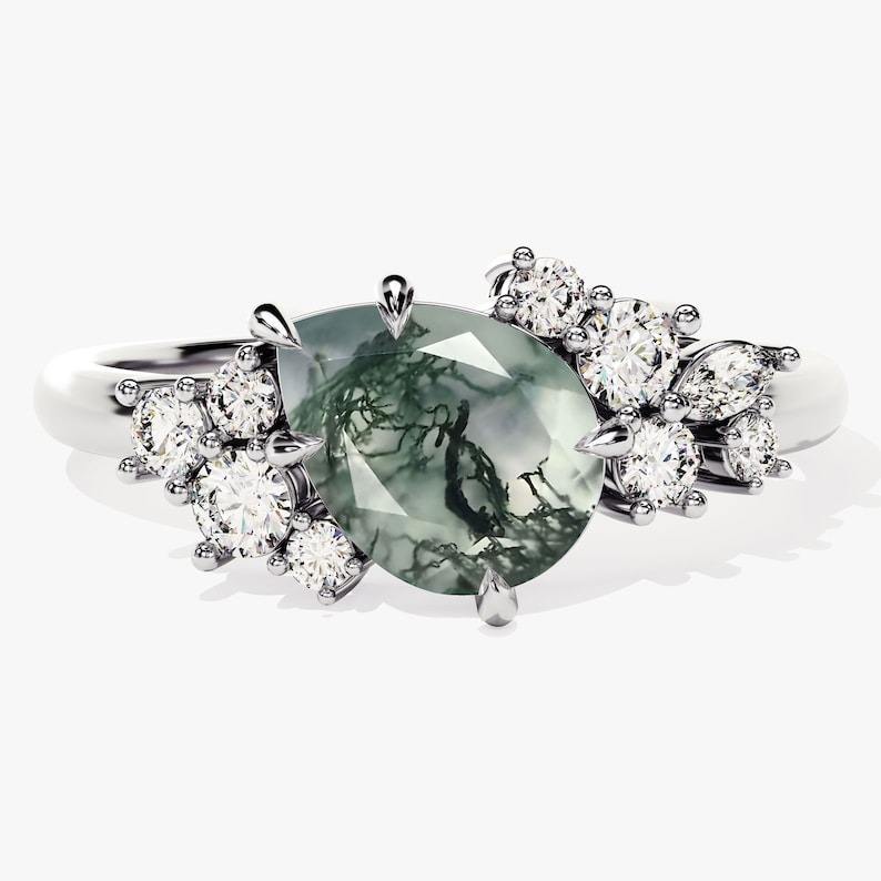 เครื่องประดับหินโมรามอสสำหรับผู้หญิงแหวนเงินสไตล์ Boho เครื่องประดับ925สเตอร์ลิงเงินแฮนด์เมดของขวัญสำหรับคุณแม่