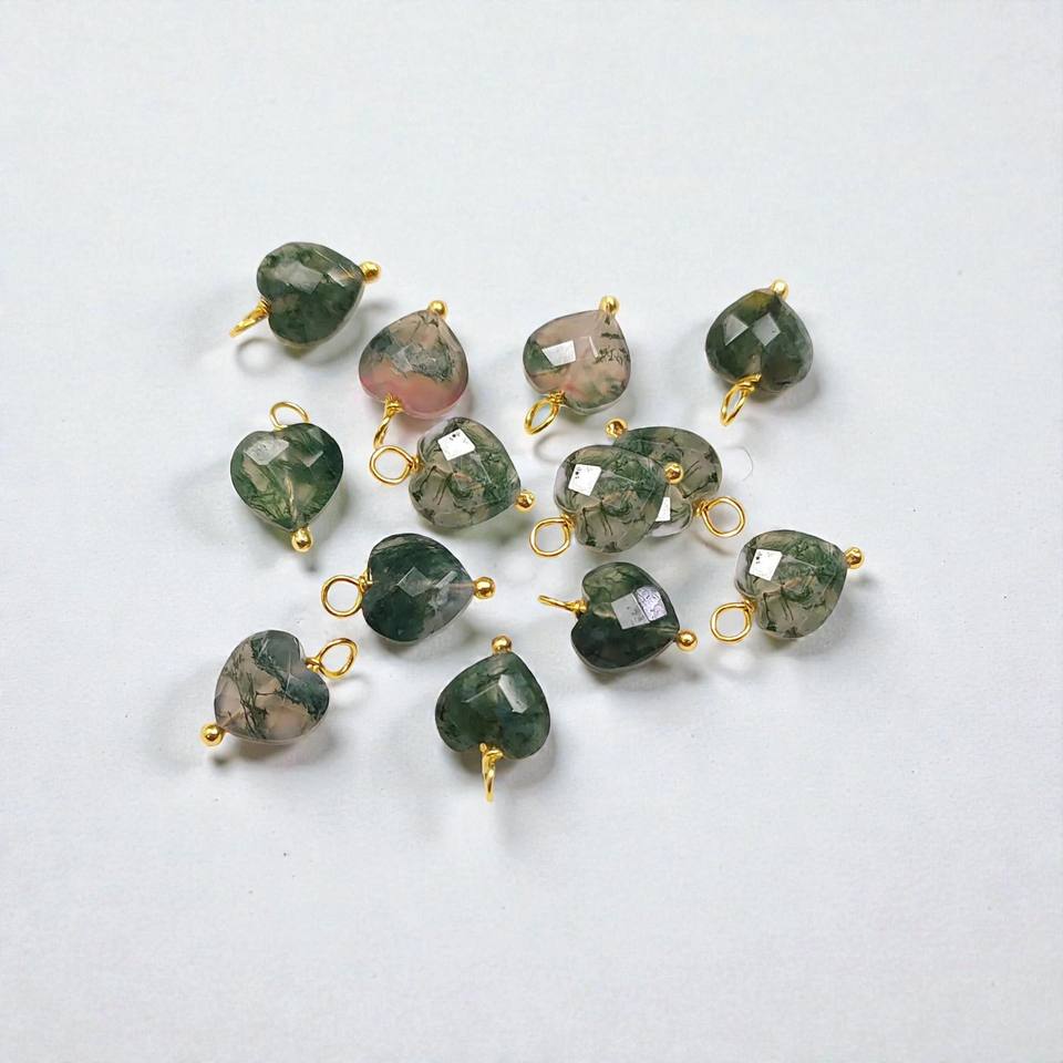 จี้หินมอสอาเกตทรงหัวใจธรรมชาติ | จี้เงินสีเขียวออร์แกนิกสำหรับเครื่องประดับทำมือ
