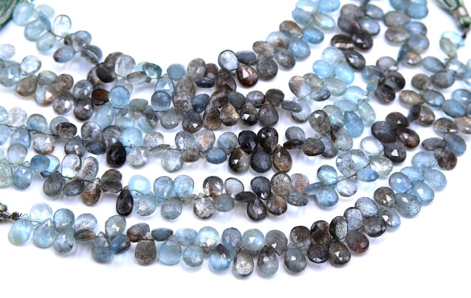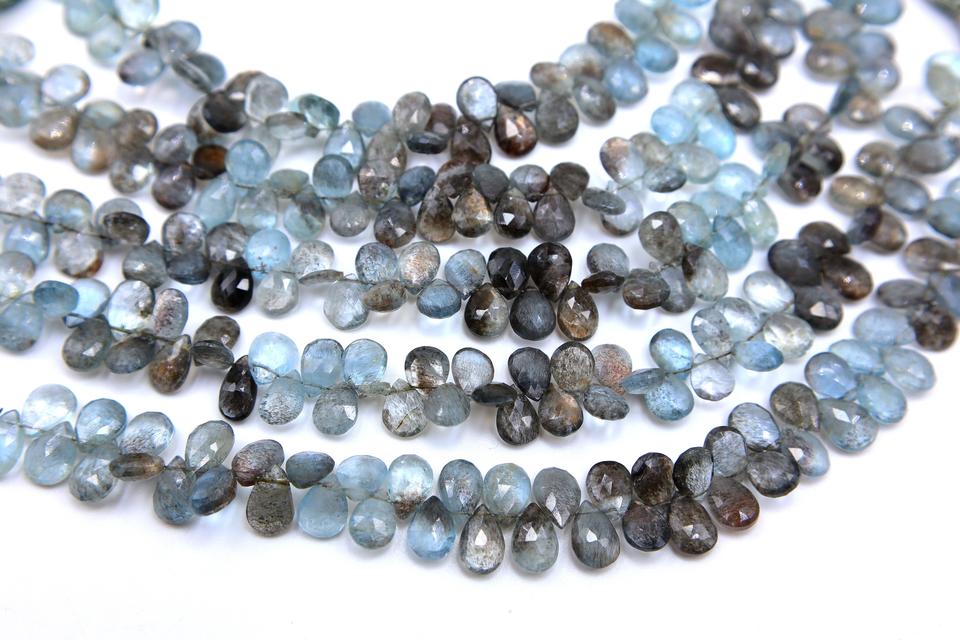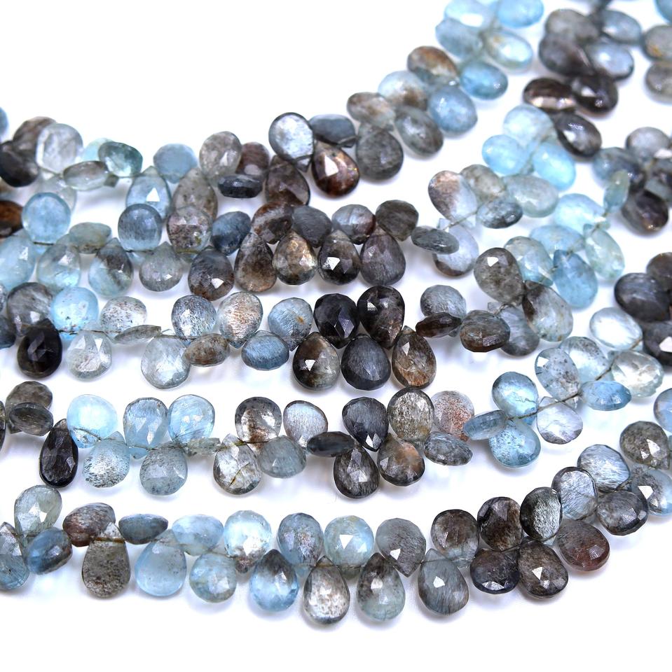 ลูกปัดธรรมชาติรูปลูกแพร์มอสส์พลอยสีฟ้าทำด้วยมือลูกปัดขนาด10นิ้วทำมือขนาด9X7MM 10X7MM ประมาณ